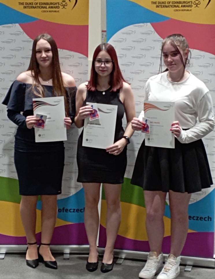 V nádherném nově zrekonstruovaném Velkém sále Slezské univerzity – Obchodně podnikatelské fakulty v Karviné se konala dne 21.3. 2024 slavnostní ceremonie úspěšných absolventů Mezinárodní ceny vévody z Edinburghu (DofE). K naší radosti se mezi oceněné dostaly i tři naše studentky Markéta Mokrošová, Eva Kadlicová a Adéla Javorková, které převzaly z rukou výkonného ředitele DofE v České republice Mgr. Tomáše Vokáče a senátorky za Frýdecko-Místecko RNDr. Heleny Pešatové mezinárodní certifikát a odznak bronzové úrovně.