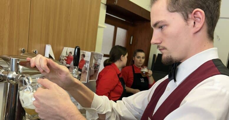 Praktická část výuky zahrnovala čepování nealkoholického piva Birell, a tak si vyzkoušeli správné techniky práce s pěnou, udržování ideální teploty a další detaily, které dělají z čepování piva opravdové umění. Tento zážitkový den poskytl žákům nejen nové znalosti, ale i možnost zažít propojení teorie s praxí v reálném prostředí.