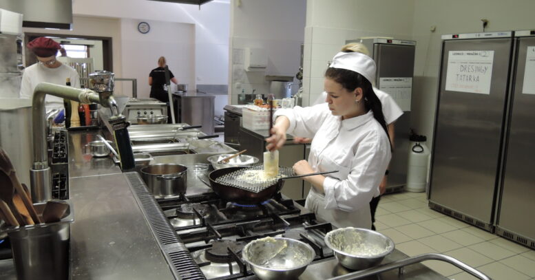 dále ve výrobních a odbytových střediscích. Gastronomická přehlídka představí žáky oboru Kuchař při přípravě vybraných pokrmů studené a teplé kuchyně, žáci oboru Číšník prostřou slavnostní tabule k vylosovaným událostem a před zraky hostů a komise flambují, míchají nápoje či dranžírují rybu. Žáci oboru Cukrář předvedou moderní cukrářský výrobek a zdobení dortu. V gastronomických zařízeních se zapojí do provozu, uvaří restaurační menu, budou obsluhovat a tvořit cukrárenské výrobky. Poslední část – ústní zkouška zahrnuje otázky ze všech odborných předmětů, ekonomiky či základů podnikání.