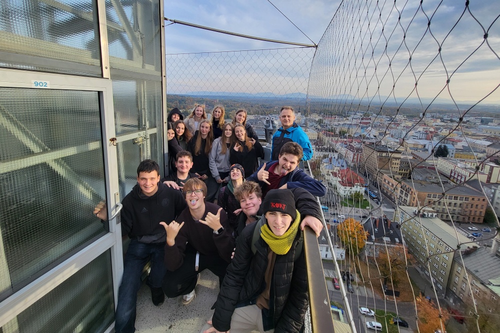 🏙️ Dne 21. října 2025 se naši noví prváci vydali na seznamovací výpravu po Ostravě. Za doprovodu vychovatele nejprve zdolali vyhlídkovou věž Nové radnice na Prokešově náměstí, odkud se kochali krásami města a poslouchali zajímavý výklad průvodce. Poté následovala příjemná procházka centrem – Masarykovo náměstí, katedrála Božského Spasitele a zasloužené sladké finále v cukrárně OC Karolina. Sluníčko přálo, výhled byl parádní a zákusky mizely rychleji než říjnové listí! 🍰☀️