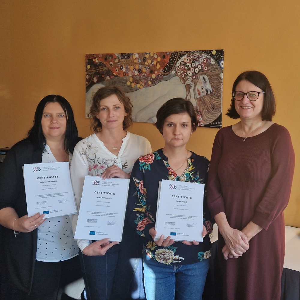 V rámci projektu Job shadowing přijely na naši školu 3 pedagogové ze SŠ Włladysław Szafer ve Złlotém potoku. Dvě vyučující odborných předmětů a učitelka angličtiny se od 9. do 13. 10. 2023 účastnily výuky Aj a odborných předmětů. Polské kolegyně monitorovaly průběh hodiny, metody výuky, záběr hodiny či komunikaci vyučujícího s žáky. Do samotných hodin nevstupovaly. Rovněž navštívily některé provozovny, kde se zajímaly o průběh praktické výuky. Na pracovištích odborného výcviku sledovaly pracovní i výukový proces našich žáků a jejich odborných učitelů.